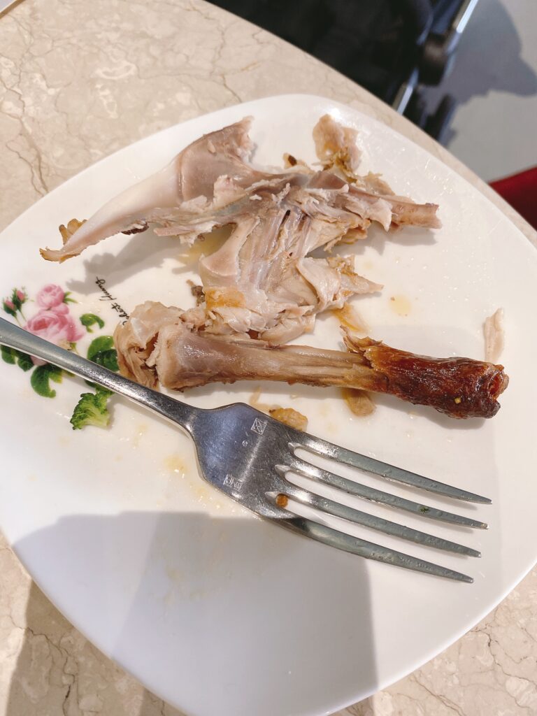 那個即始點了套餐主餐還要再加一百的香草烤雞終於上來了